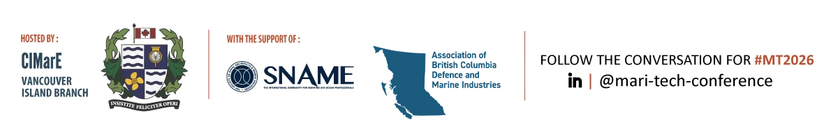 Held annually, Mari-Tech 2026 is hosted by the CIMarE Vancouver Island Branch, with support from the SNAME Canadian Pacific Section and Association of British Columbia Marine Industries. The event will take place in beautiful Victoria, BC.